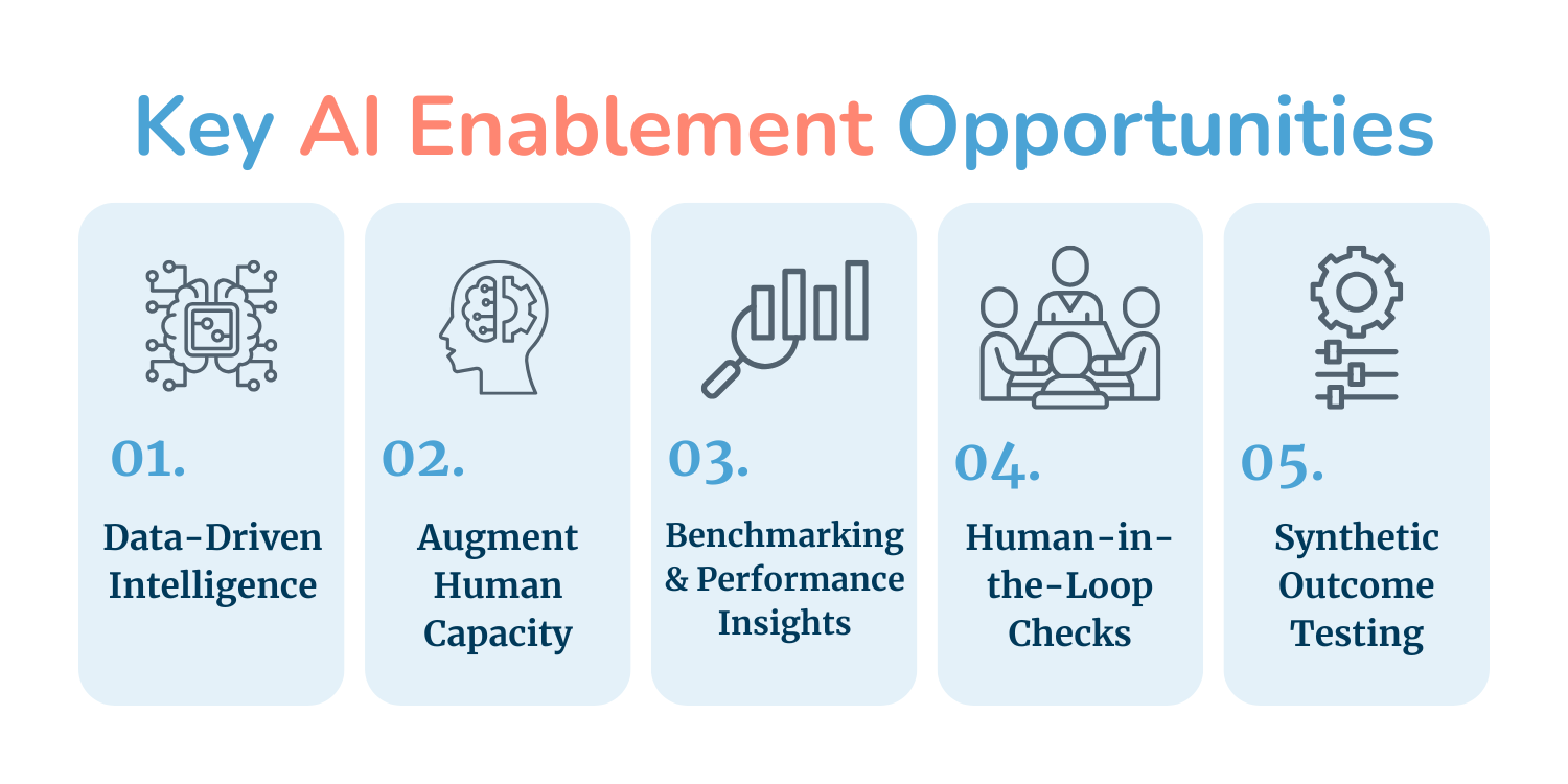 It’s essential that any transformation your business undertakes is aligned with your current strategic objectives and future growth plans. Our AI enablement process ensures we are adding real value to your workplace in support of your goals.