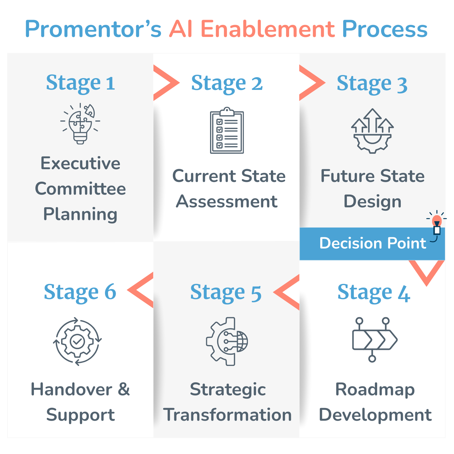 Promentor helps organisations to redefine operational excellence through AI enablement and digital transformation. Our team supports agile decision-making and sustainable growth in three ways: